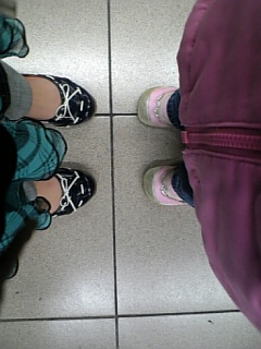 地べたにカバン置いて靴紐とか